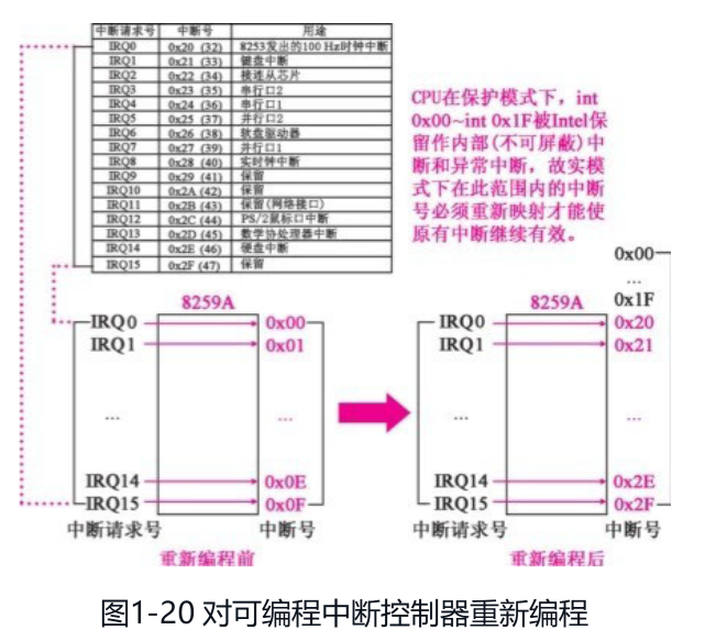 自制操作系统(6):硬件中断与键盘驱动 上一篇文章我们设置了GDT与IDT,现在,我们的系统能处理软件中断了。今天,我们来让我们的操作系统具备处理硬件中断的能力。 硬件中断 硬件中断相对于软件中断,顾名思义就是由硬件向CPU发出的中断了,比如说键盘输入、硬盘读取等等,都会向CPU发送中断来告知硬件目前所处的状态以及新发生的一些事件。 但是硬件其实并不直接向CPU发送中断,它们俩的桥梁是一个叫8259 PIC(可编程中断控制器) 的芯片。 硬件中断重映射 由于一些早年的不兼容的设计,8259会有默认的,从IRQ到IDT的如下的映射: 主片 (Master PIC):负责 IRQ 0-7。在 IB […]