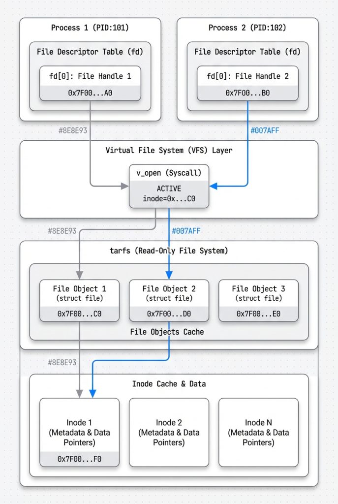 2、我们把文件句柄的管理放在了具体驱动(这里是tarfs)的实现层,这部分应该放在vfs。